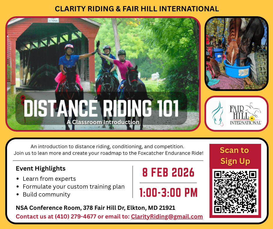 Fair Hill International has been hosting the Foxcatcher Endurance Ride since 2001, at the beautiful Fair Hill Natural Resource Management Area in Elkton, Maryland. We typically host a 25 mile and a 50 mile ride as well as 10 to 12 mile Intro rides and Ride and Ties. Expect to ride through tunnels, over bridges, on single track trail through the woods, and through wide-open fields. Our rolling terrain is challenging, but forgiving enough to make Foxcatcher an excellent first ride of the season (or first ride of your endurance career). Foxcatcher never lacks in grass on the trail, and the trail has plenty of water crossings. All vet holds are in camp. The 50 mile ride has a 10 minute “hold” out on the course, with water available.