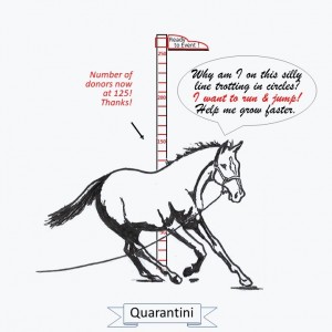 The pandemic persists, and we still need help raising Quarantini. Every donation, no matter how small, helps Quarantini as he grows up to become a great Eventer! Please be one of Quarantini’s owners and help him reach his next milestone, and keep an eye out for all his other growth spurts!