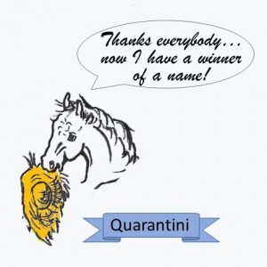 Once upon a time a terrible pandemic swept the world, canceling hundreds of horse events including most of Fair Hill International’s 2020 season. It made it hard to pay the rent and pay our grass cutters. Because grass still grew. We needed hope. Miraculously, along came a cute little foal to give us encouragement – to lead us back – to assure us that we WOULD RIDE AGAIN! Then, so many of our friends donated so generously to raise our little foal and we watched him grow – he’s now a two-year-old learning to lunge! One of our friends, Ingrid Patel, even named him for us: Quarantini. Perfect! And we did finally start to RIDE AGAIN!