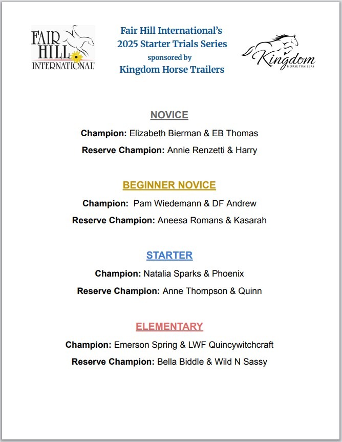 FHI hosts three unrecognized “Starter” Horse Trials every year, including Elementary, Starter, Beginner Novice, and Novice levels.